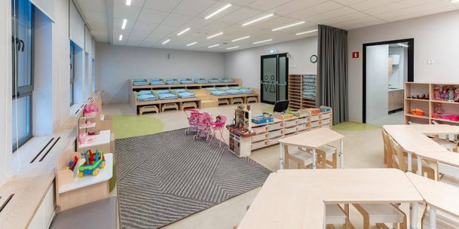 Он предназначен для 150 детей. В интерьере преобладают оттенки серого, оливкового и белого. Над проектом работали в рамках Адресной инвестиционной программы. Объект находится рядом с жилыми домами, трех минутах ходьбы переданная под заселение по реновации новостройка. Также рядом Тимирязевский парк.